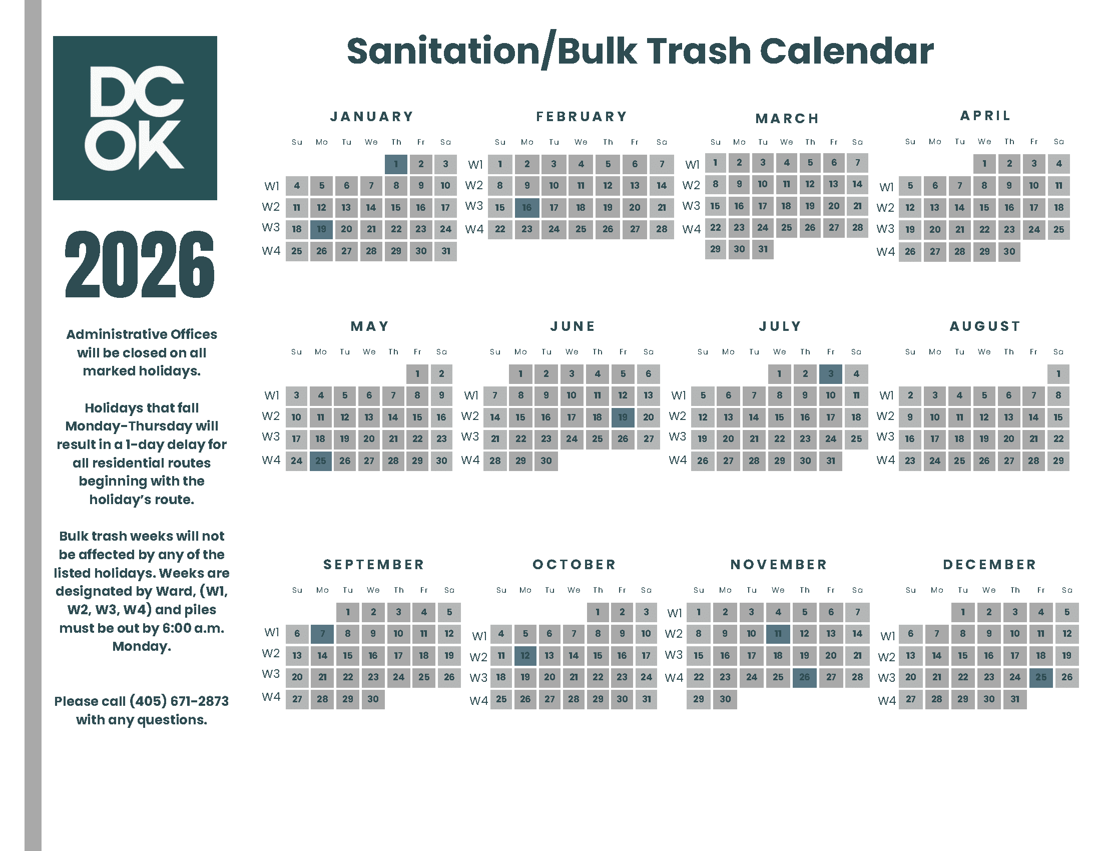 The Sanitation Division of the Del City Public Works Department services both residential and commercial accounts, providing essential waste management services. We manage: