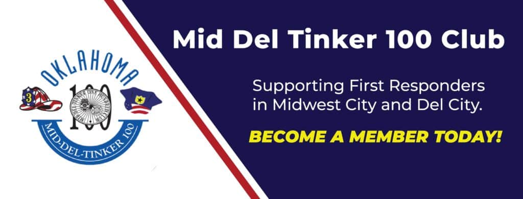 “The Mid Del Tinker 100 Club provides financial assistance to the dependent families of peace officer, firefighters, and first responders who are killed or seriously injured in the line of duty. The 100 Club is a non-profit organization that is 100% funded by people like you. Our mission is to provide immediate financial assistance to the dependent families of first responders who are killed or seriously injured in the line of duty. Since 1984 the Mid Del Tinker 100 club has served those who serve us. Each year, the 100 Club honors first responders that have gone above and beyond the call of duty. We proudly fund scholarships to first responders and their dependents. Please join us to support those who serve in Midwest City, Del City and Tinker Air Force base by becoming a member today. Thank you for your interest and support. If you have any questions please contact us. The Mid Del Tinker 100 Club truly makes a difference in our community and the lives of law enforcement officers and firefighters.” -Mid-Del Tinker 100