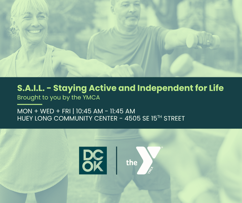 Mondays, Wednesdays, Fridays, beginning Dec 1st, 2025. 10:45AM-11:45AM YMCA – S.A.I.L. (Staying Active and Independent for Life) Strength, Balance, and Fitness Program.