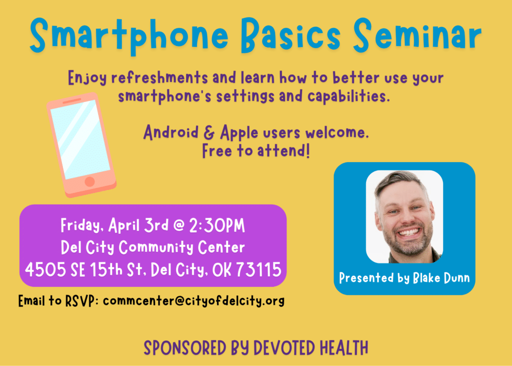 Enjoy refreshments and learn how to better use your smartphone’s settings and capabilities. Android and Apple users FREE to attend.